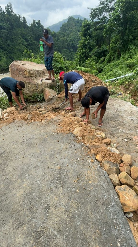 काभ्रेको विकट खानीखोला गाउँपालिकाको केन्द्र ताल्ढुङ्गा पुग्ने बाटो वर्षा र सरकारी बेवास्ताले बन्द भएको अवस्थामा – खानीखोलाका ५० जना भन्दा धेरै युवा दस्ता अहिले विकासको पहिलो मोर्चामा उभिएका छन्।